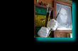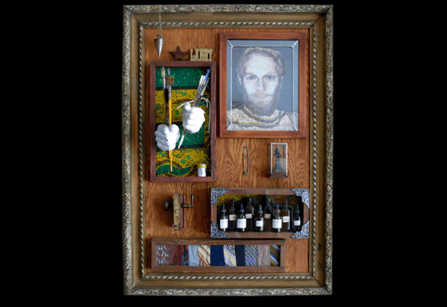 2008, 24"x36", Inherited objects, wood, plaster, eched glass, aluminum and acrylic paint. |