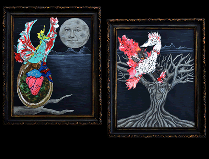 2014 16"x14", Oil painting and charcoal, Sold as a pair $650. |