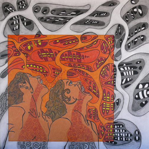 2008, 20"x20" Charcoal and color pencil, Unframed $325. |