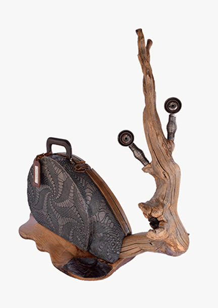 2014, 25"x19" x82", Multi genra to include found wood, ceramic clay, natural stone, watch parts, leather and found objects. $8000 |